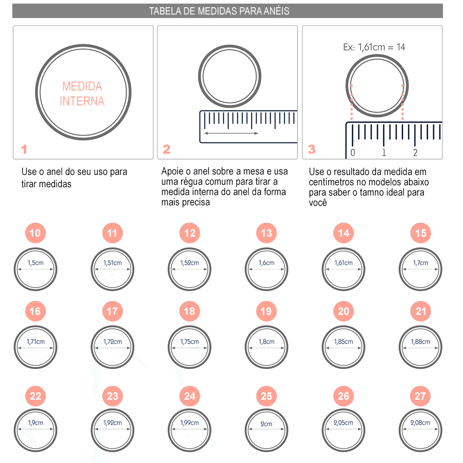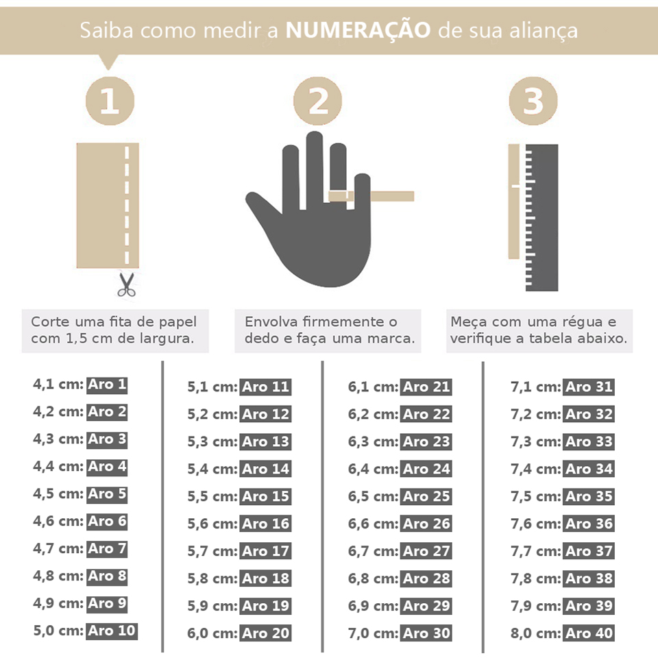 - Anéis Convencionais: Utilize nosso guia de medidas para encontrar o ajuste perfeito.